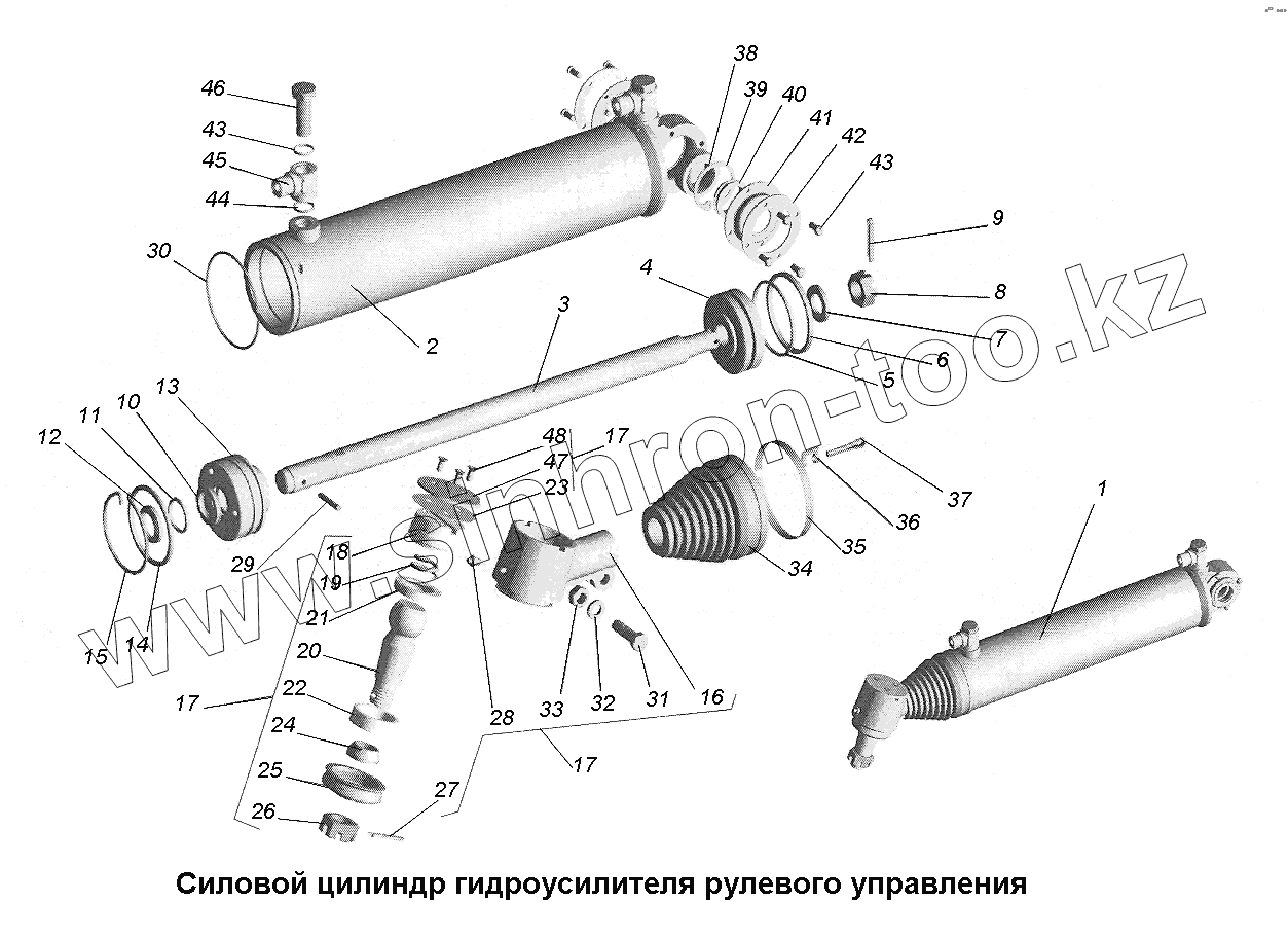 Каталог запасных частей к технике: МАЗ-543403, 641705, 641708. Силовой цилиндр гидроусилителя рулевого управления