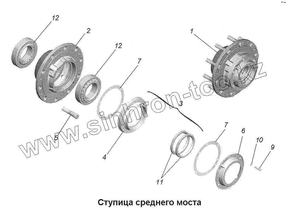 Каталог запасных частей к технике: МАЗ-543403, 641705, 641708. Ступица среднего моста