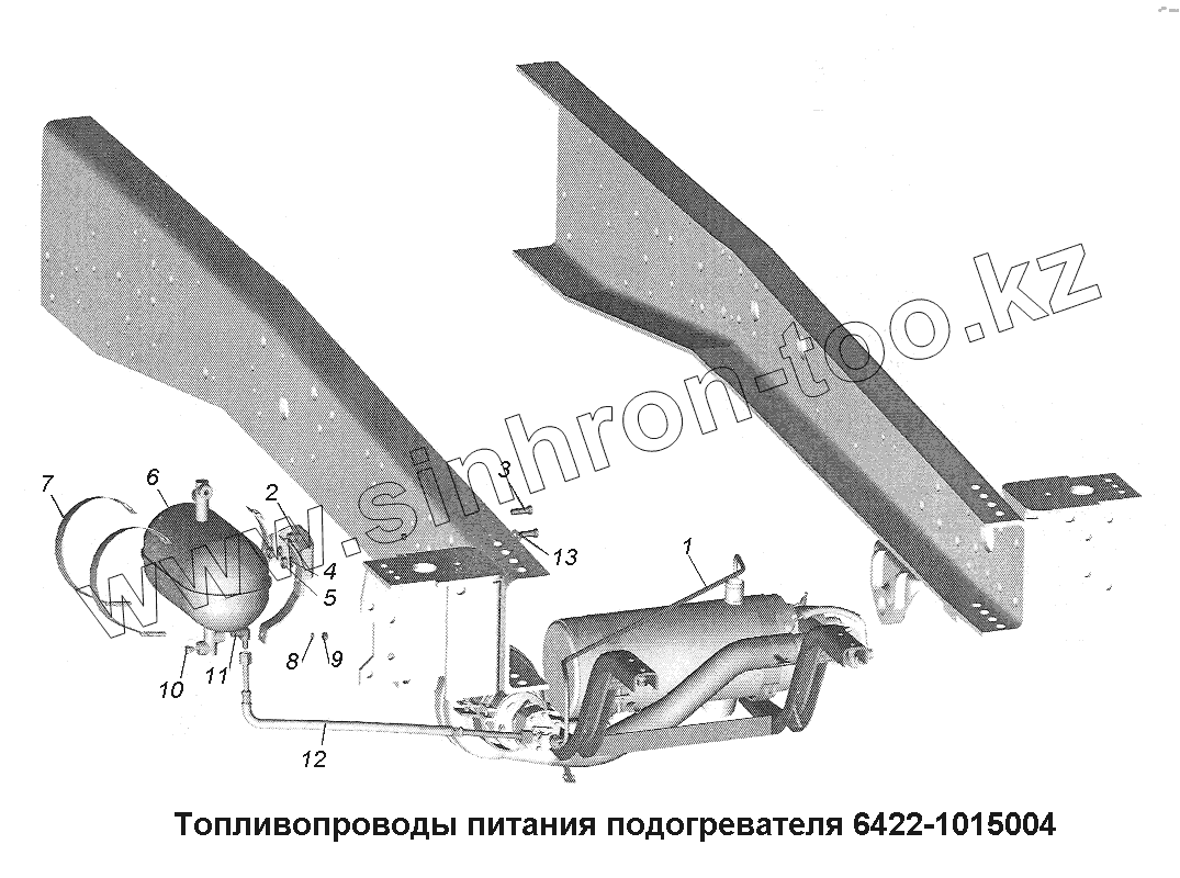 Каталог запасных частей к технике: МАЗ-543403, 641705, 641708. Топливопроводы питания подогревателя 6422-1015004