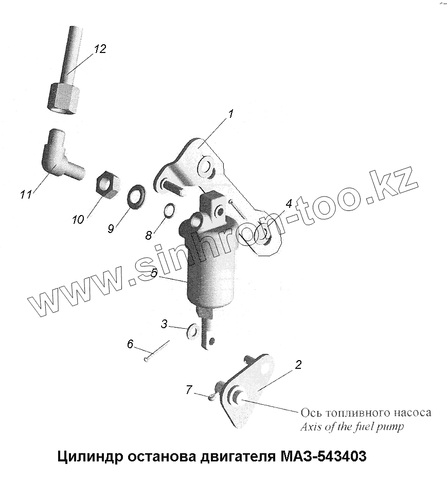 Каталог запасных частей к технике: МАЗ-543403, 641705, 641708. Цилиндр останова двигателя МАЗ-543403