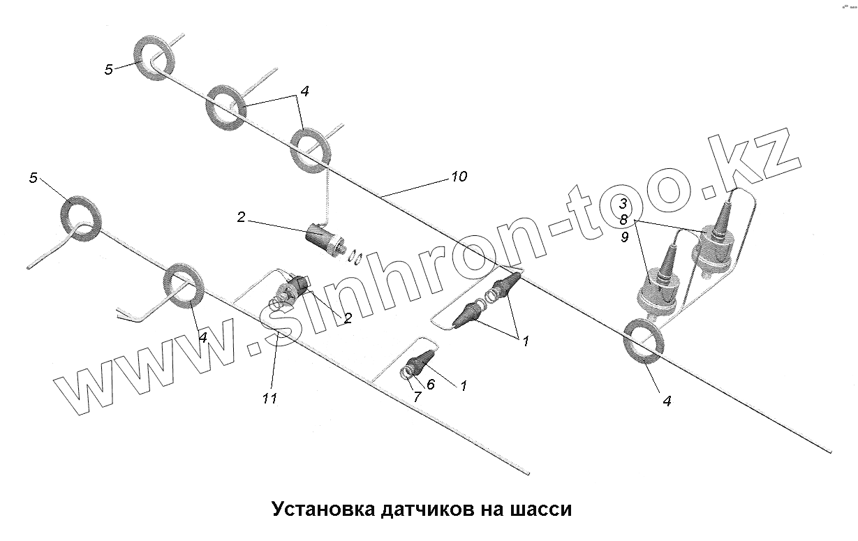 Каталог запасных частей к технике: МАЗ-543403, 641705, 641708. Установка датчиков на шасси