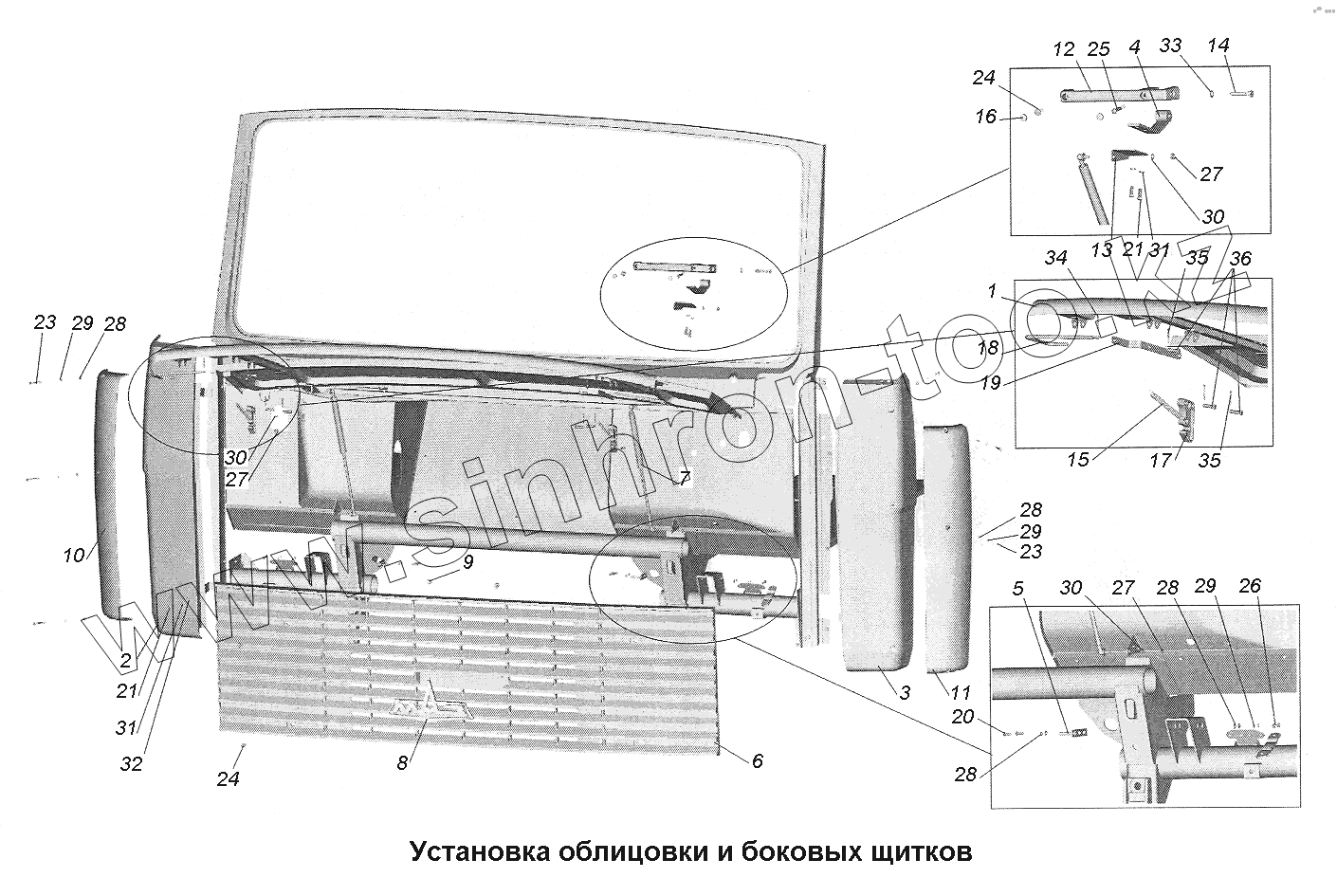 Каталог запасных частей к технике: МАЗ-543403, 641705, 641708. Установка облицовки и боковых щитков