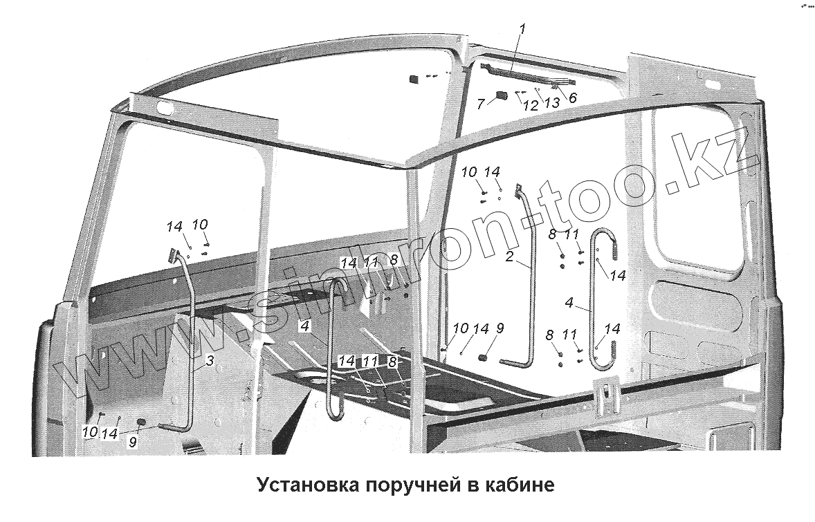 Каталог запасных частей к технике: МАЗ-543403, 641705, 641708. Установка поручней в кабине
