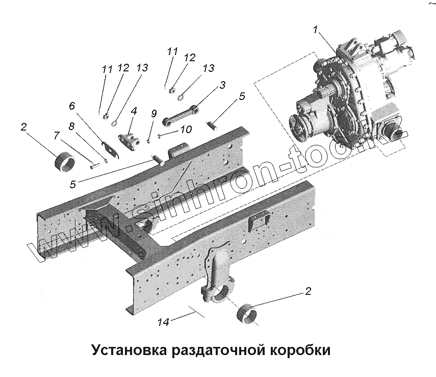 Каталог запасных частей к технике: МАЗ-543403, 641705, 641708. Установка раздаточной коробки.