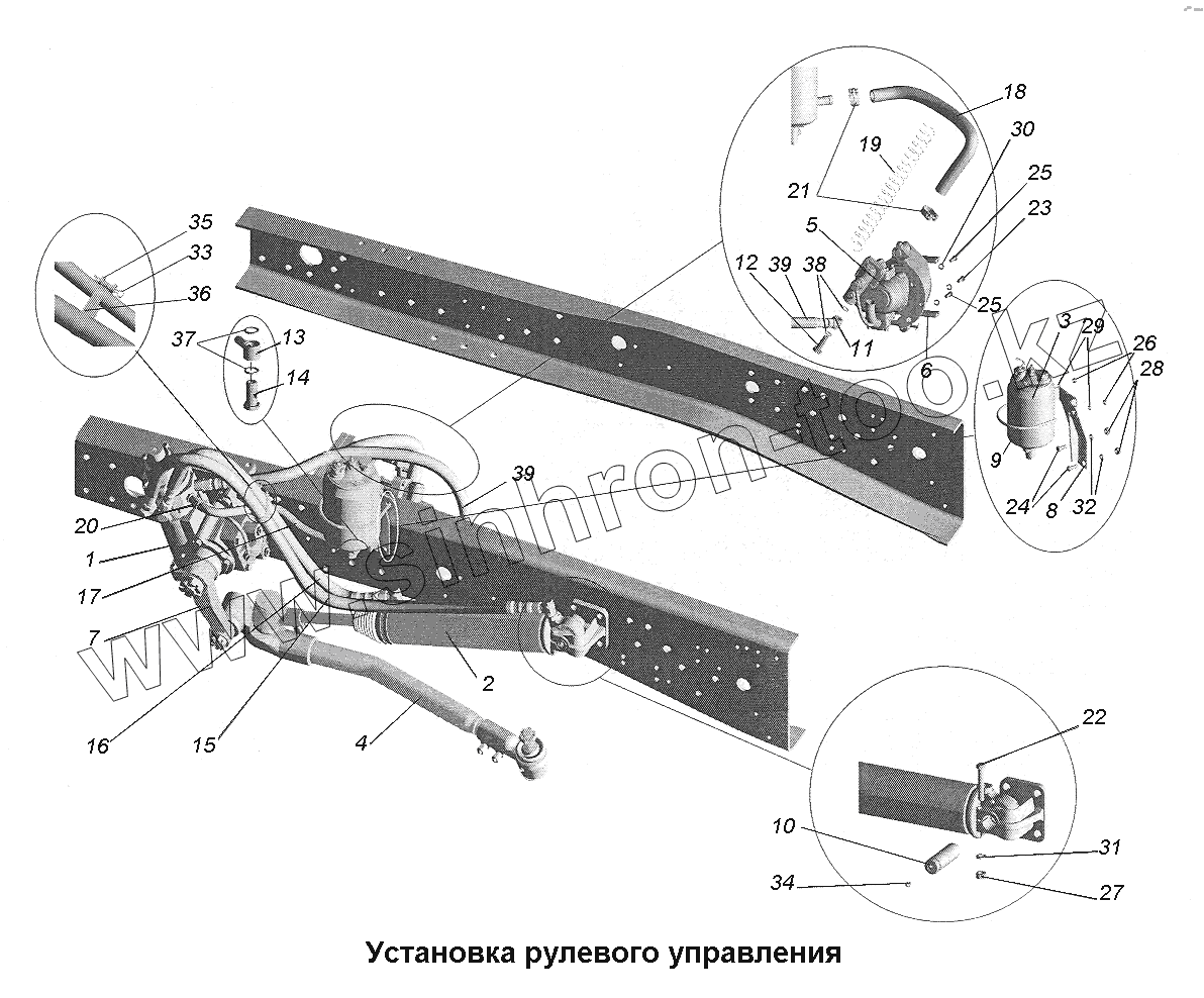 Каталог запасных частей к технике: МАЗ-543403, 641705, 641708. Установка рулевого управления