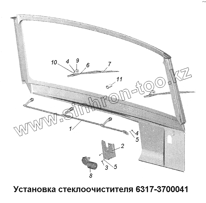 Каталог запасных частей к технике: МАЗ-543403, 641705, 641708. Установка стеклоочистителя 6317-3700041