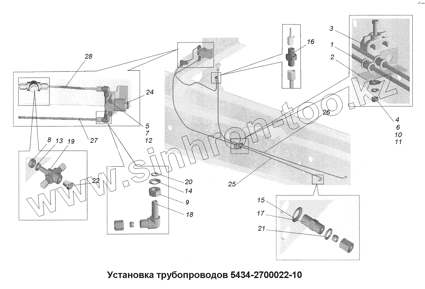 Каталог запасных частей к технике: МАЗ-543403, 641705, 641708. Установка трубопроводов 5434-2700022-10