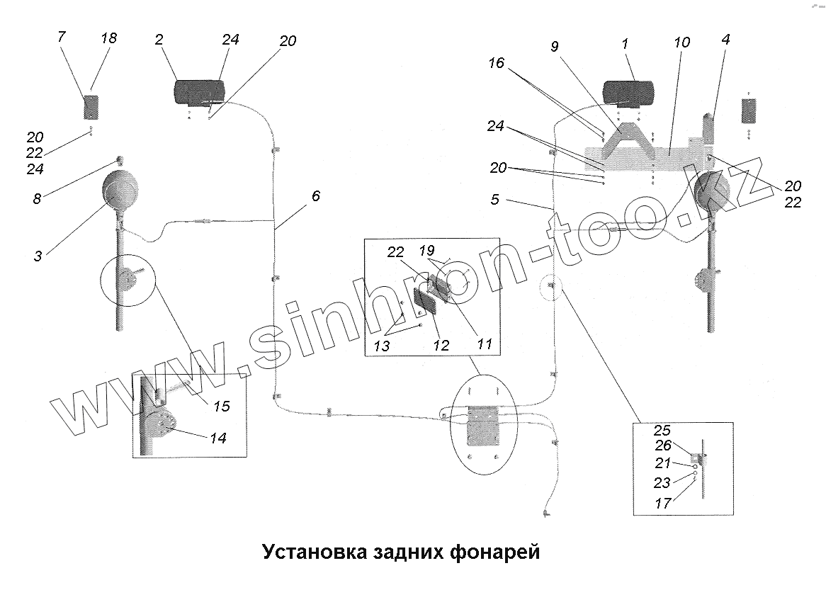 Каталог запасных частей к технике: МАЗ-543403, 641705, 641708. Установка задних фонарей