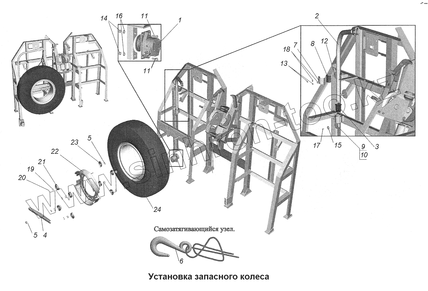 Каталог запасных частей к технике: МАЗ-543403, 641705, 641708. Установка запасного колеса