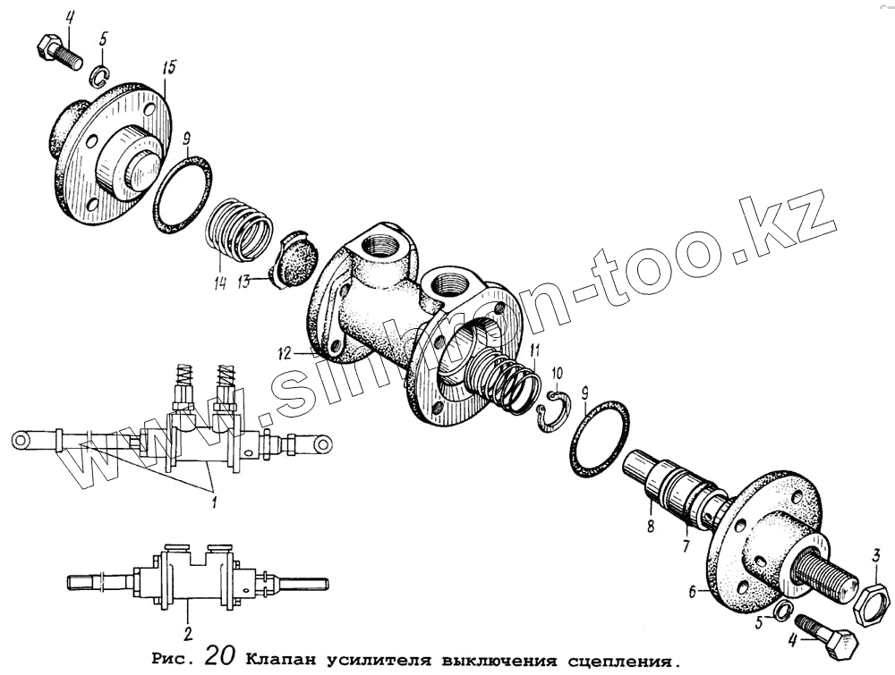 Каталог запасных частей к технике: МАЗ-5434. Клапан усилителя выключения сцепления