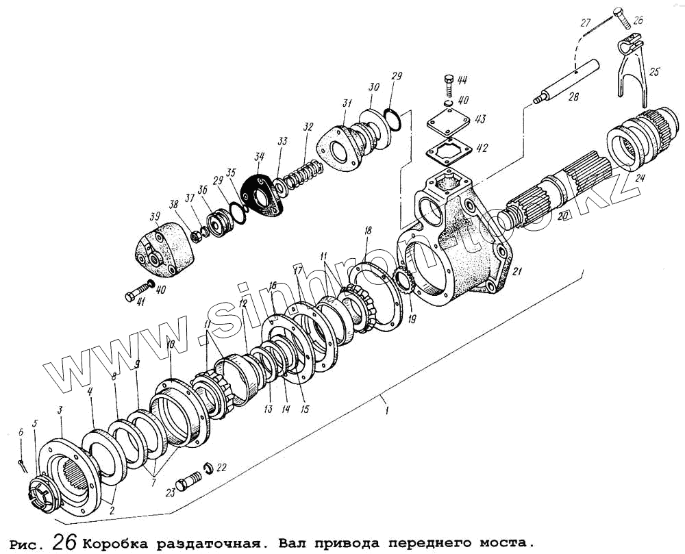Каталог запасных частей к технике: МАЗ-5434. Коробка раздаточная. Вал привода переднего моста