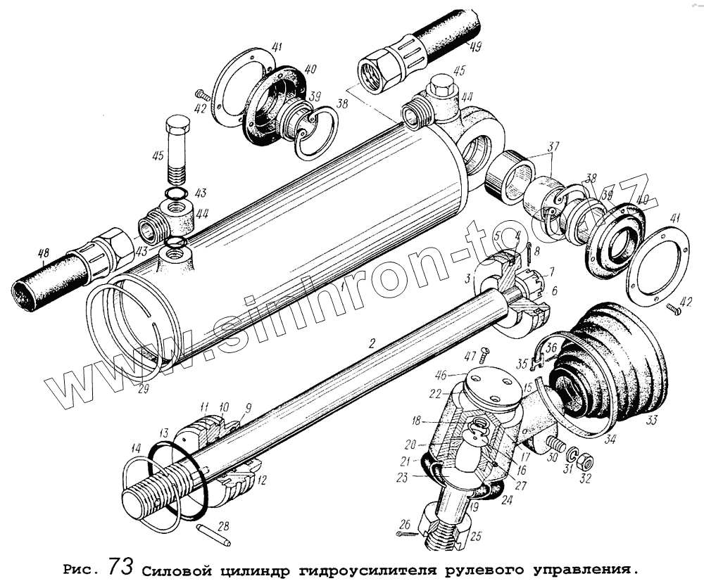 Каталог запасных частей к технике: МАЗ-5434. Силовой цилиндр гидроусилителя рулевого управления