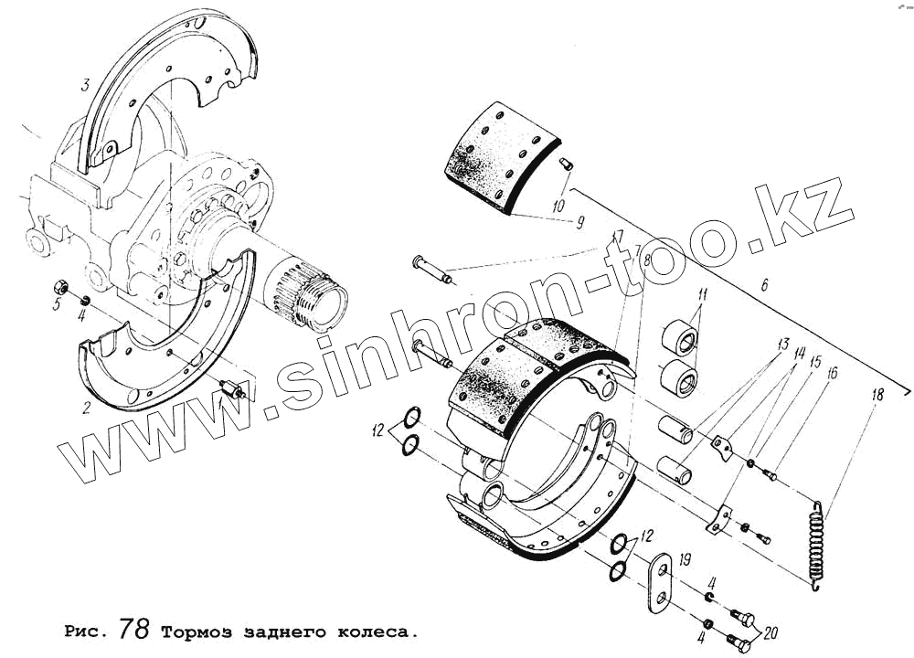 Каталог запасных частей к технике: МАЗ-5434. Тормоз заднего колеса