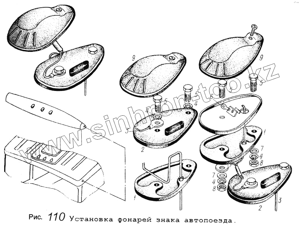 Каталог запасных частей к технике: МАЗ-5434. Установка фонарей знака автопоезда
