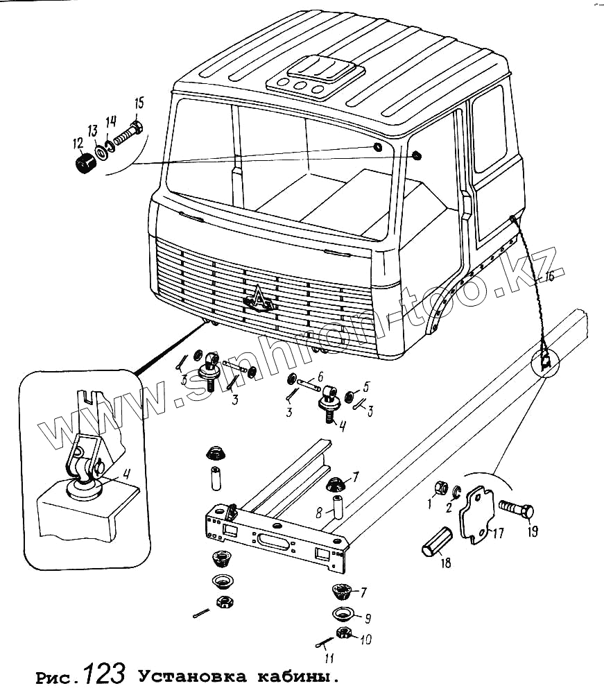 Каталог запасных частей к технике: МАЗ-5434. Установка кабины