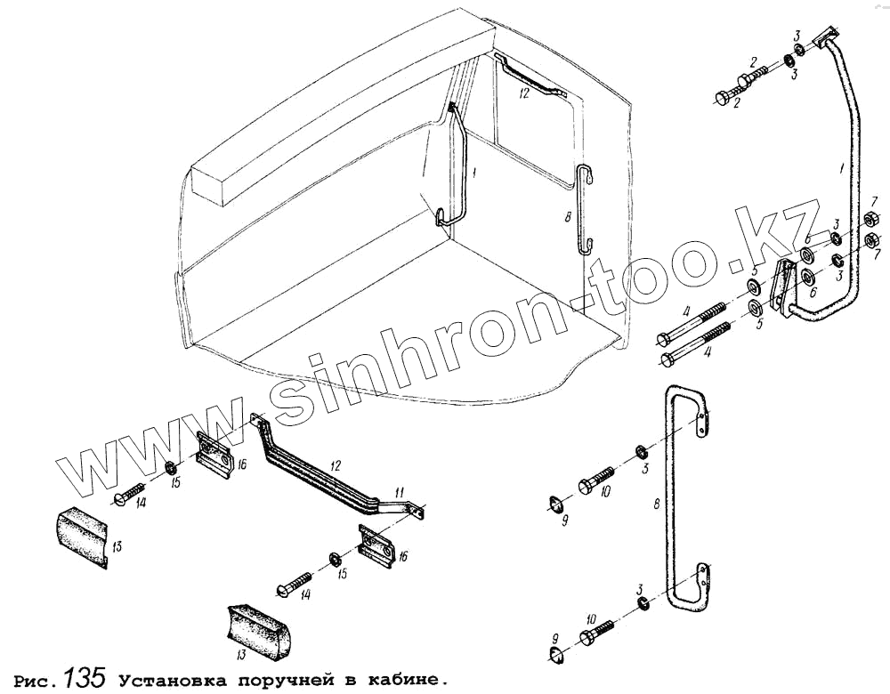 Каталог запасных частей к технике: МАЗ-5434. Установка поручней в кабине