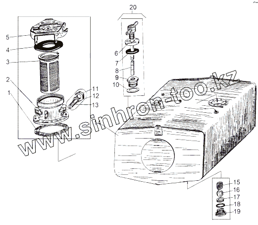 Каталог запасных частей к технике: МАЗ-543 (7310). Бак топливный 543В-1101010-11