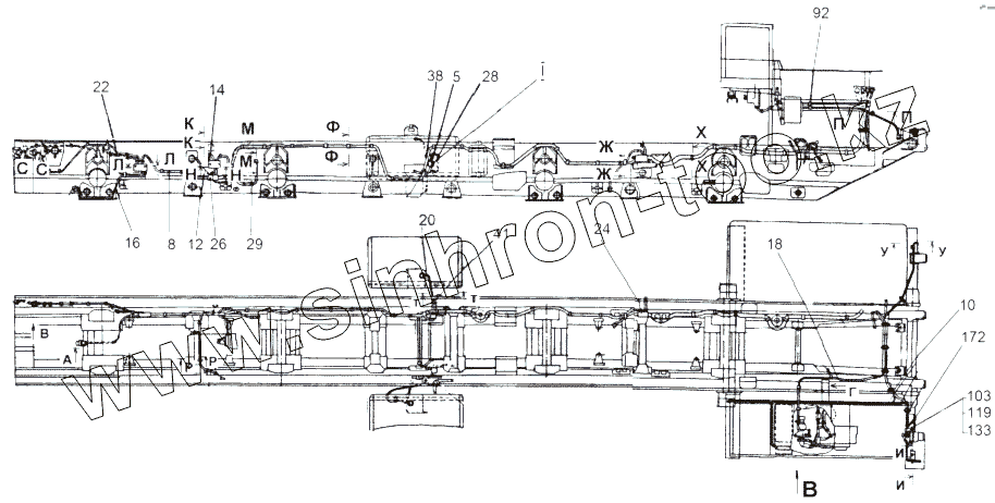 Каталог запасных частей к технике: МАЗ-543 (7310). Монтаж проводов по шасси