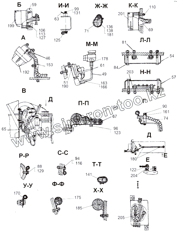 Каталог запасных частей к технике: МАЗ-543 (7310). Монтаж проводов по шасси