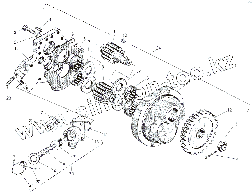Каталог запасных частей к технике: МАЗ-543 (7310). Насос задний 543-1704110-10