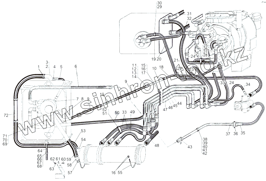 Каталог запасных частей к технике: МАЗ-543 (7310). Трубопроводы гидравлической системы ГМТ 543М