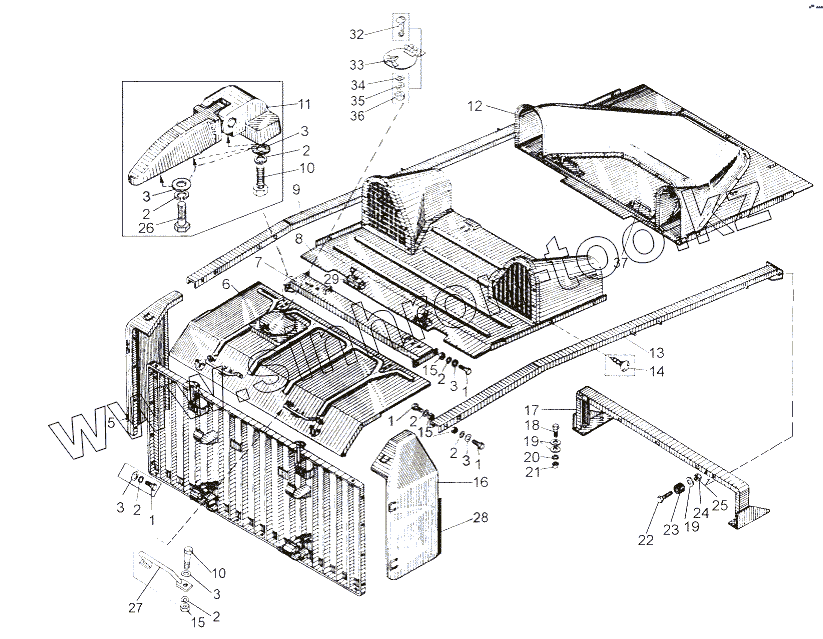 Каталог запасных частей к технике: МАЗ-543 (7310). Установка капота