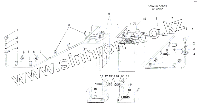 Каталог запасных частей к технике: МАЗ-543 (7310). Установка омывателей 543, 543А