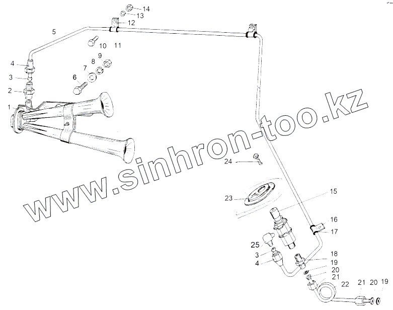 Каталог запасных частей к технике: МАЗ-543 (7310). Установка пневматического сигнала