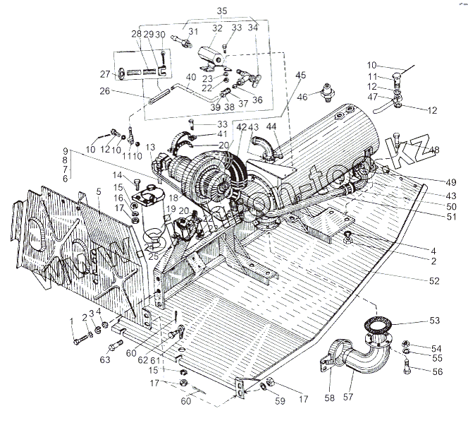 Каталог запасных частей к технике: МАЗ-543 (7310). Установка подогревателя 543-1000022, 543М-1000022