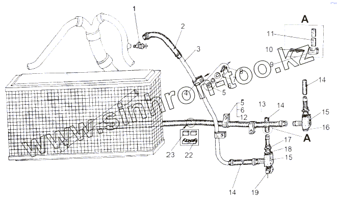 Каталог запасных частей к технике: МАЗ-543 (7310). Установка трубопроводов отопителя кабины 543М