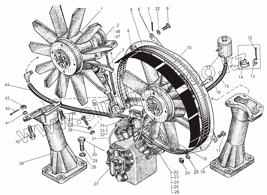 Каталог запасных частей к технике: МАЗ-543 (7310). Установка вентилятора, привода