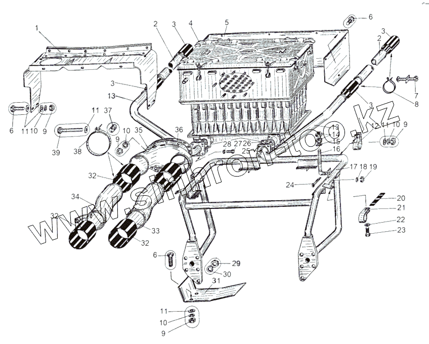 Каталог запасных частей к технике: МАЗ-543 (7310). Установка воздухоочистителя 543, 543А