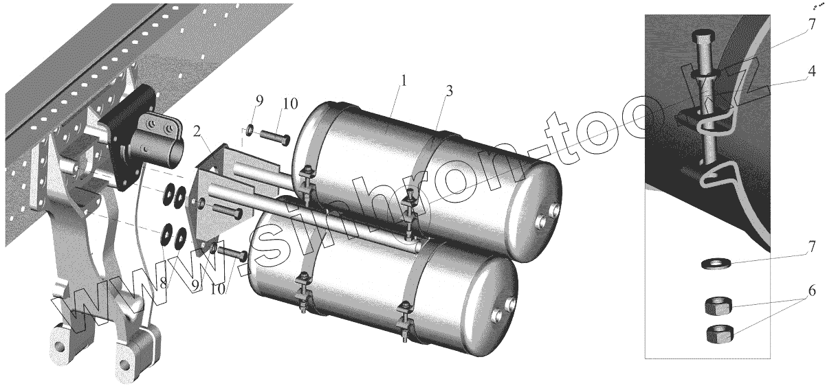 Каталог запасных частей к технике: МАЗ-544018. Крепление ресиверов 544018-3513007
