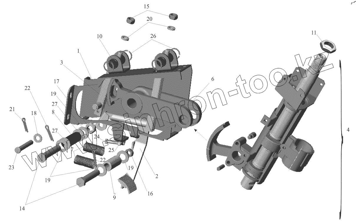 Каталог запасных частей к технике: МАЗ-544018. Кронштейн с колонкой 5440-3403008