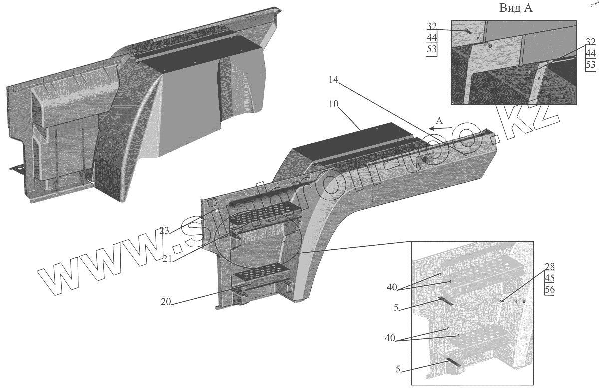 Каталог запасных частей к технике: МАЗ-544018. Оперение 6312-8400011-010