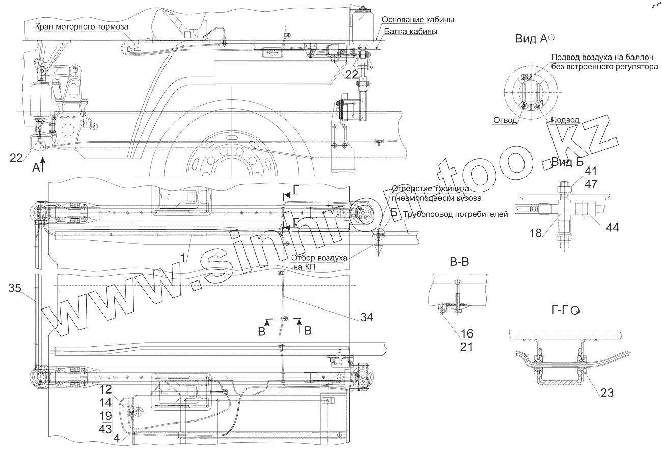Каталог запасных частей к технике: МАЗ-544018. Пневмопитание подвески кабины 643019-5001930