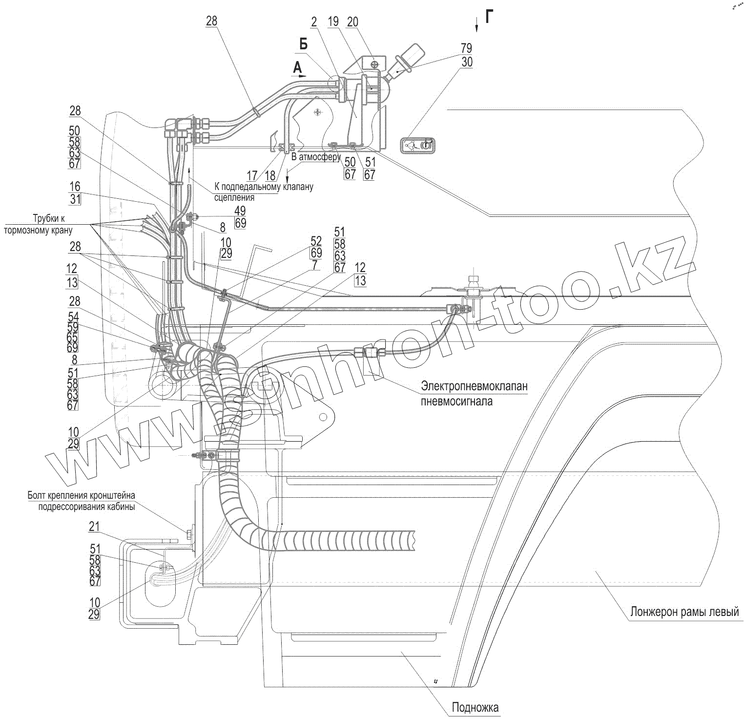 Каталог запасных частей к технике: МАЗ-544018. Привод стояночного тормоза 544019-3537006
