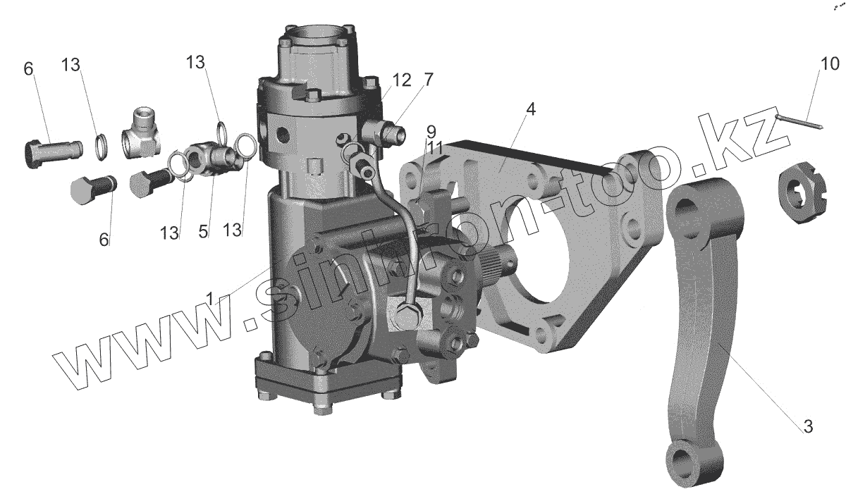 Каталог запасных частей к технике: МАЗ-544018. Рулевой механизм с кронштейном 544019-3400006