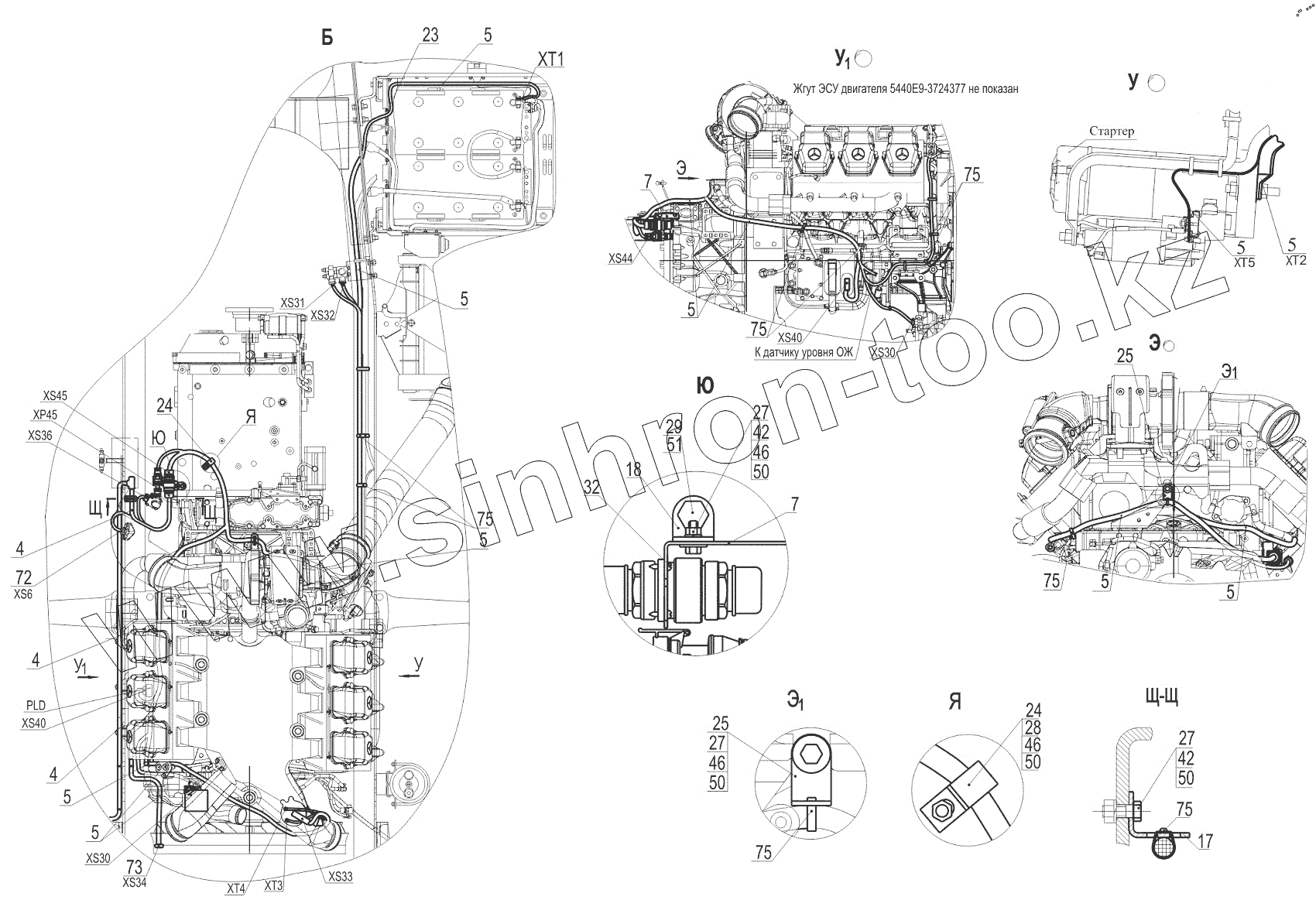 Каталог запасных частей к технике: МАЗ-544018. Установка электрооборудования ЭСУ двигателя
