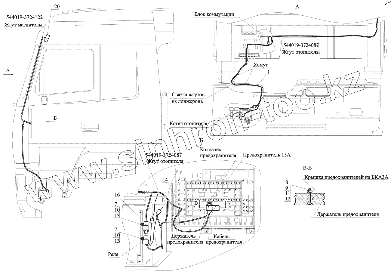 Каталог запасных частей к технике: МАЗ-544018. Установка электрооборудования подогревателя 544019-3700085