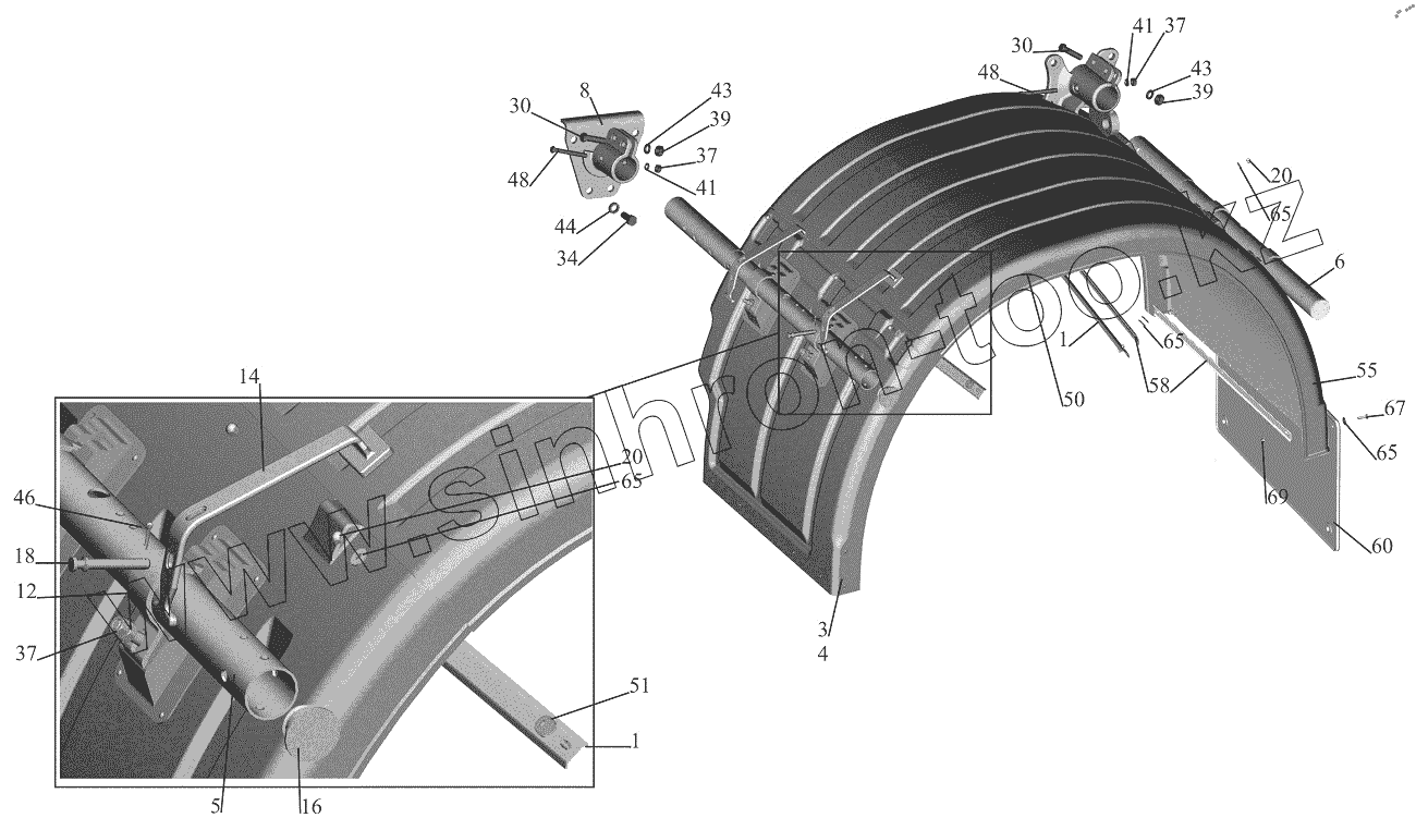 Каталог запасных частей к технике: МАЗ-544018. Установка крыльев 544019-8500048-060