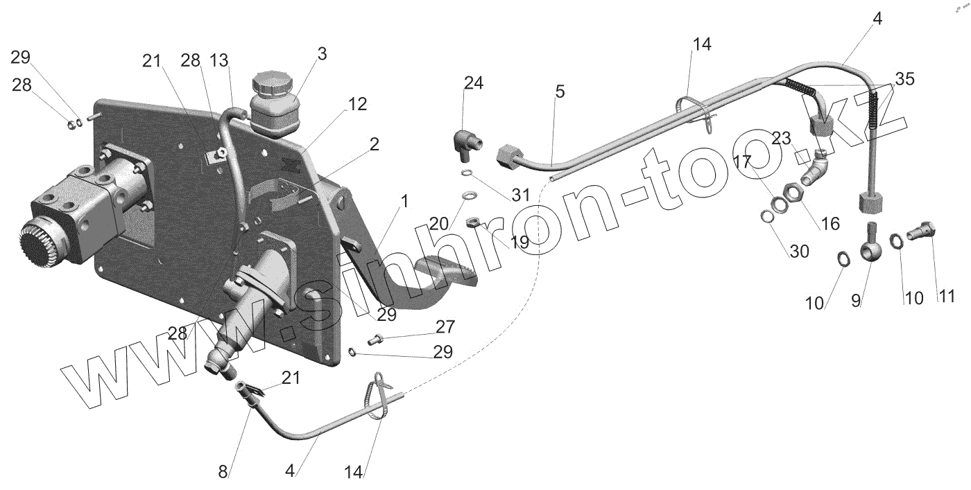 Каталог запасных частей к технике: МАЗ-544018. Установка механизма управления сцеплением 544019-1600005