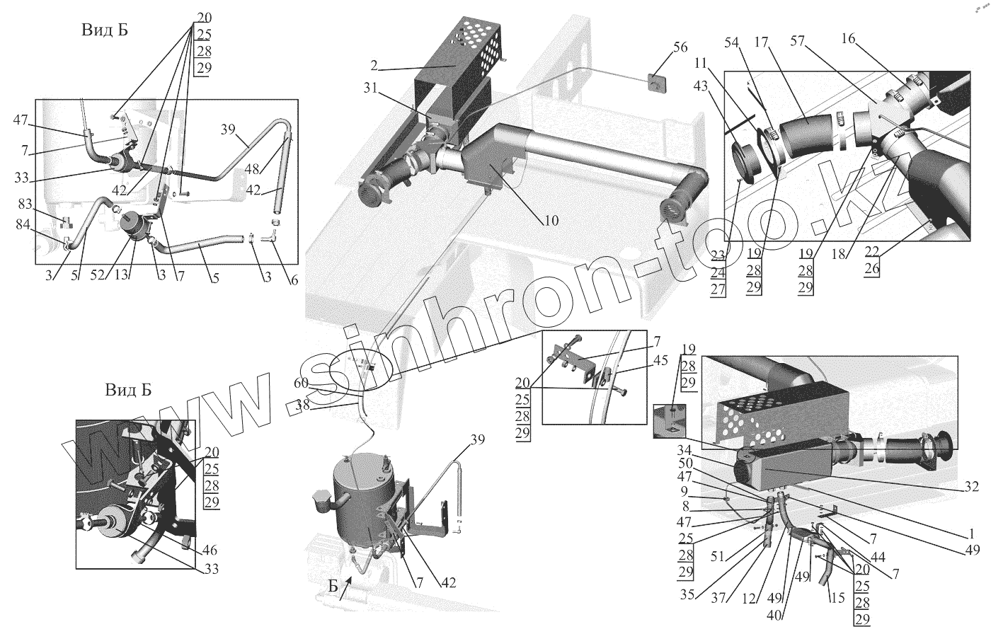 Каталог запасных частей к технике: МАЗ-544018. Установка независимого воздушного отопителя 6430-8100002