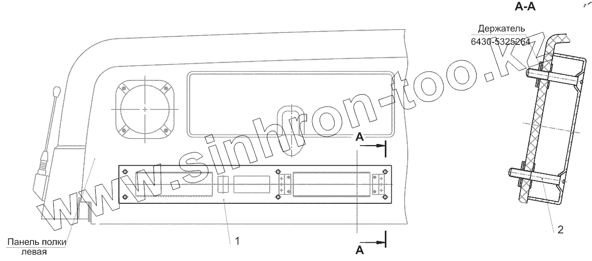 Каталог запасных частей к технике: МАЗ-544018. Установка панели на полке 544019-7901080