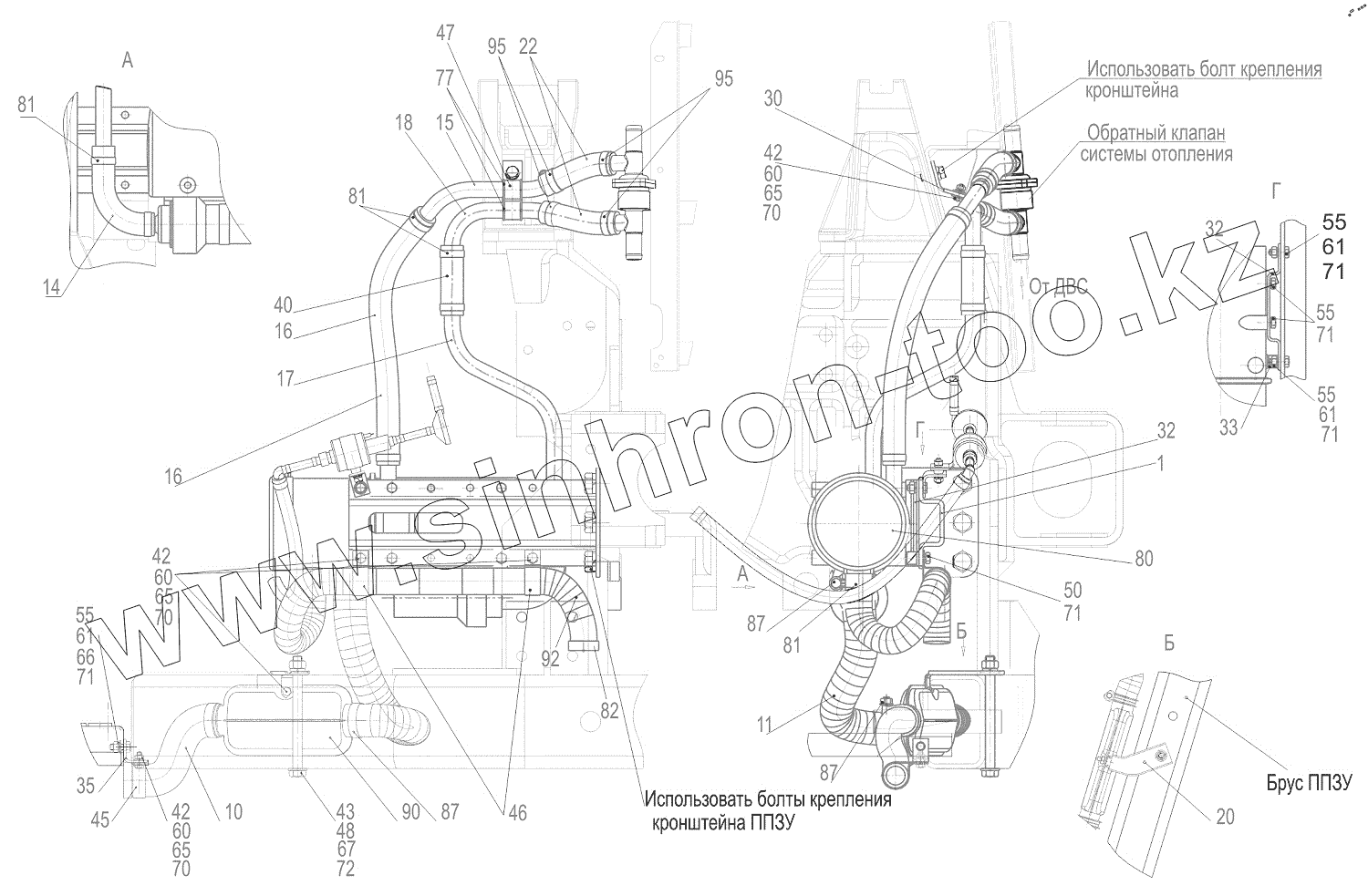Каталог запасных частей к технике: МАЗ-544018. Установка подогревателя 544019-1015001-010
