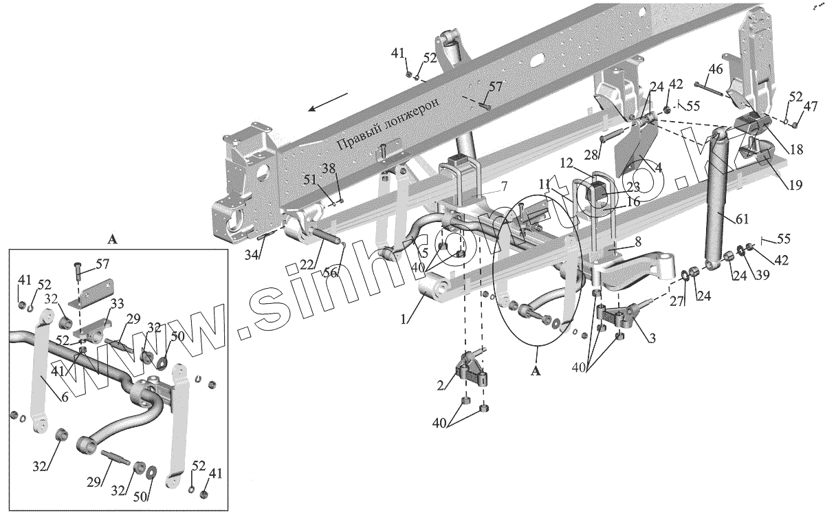 Каталог запасных частей к технике: МАЗ-544018. Установка подвески передней 544018-2900001-031