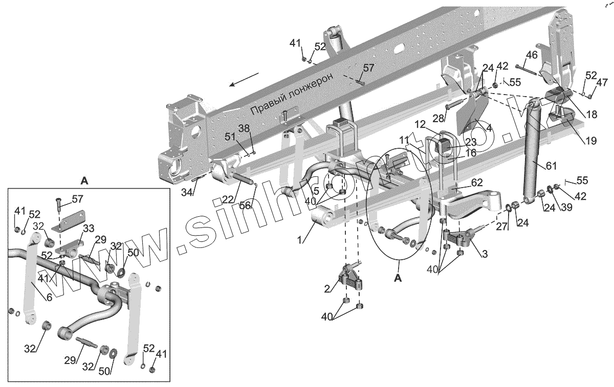 Каталог запасных частей к технике: МАЗ-544018. Установка подвески передней 5440-2900001-030