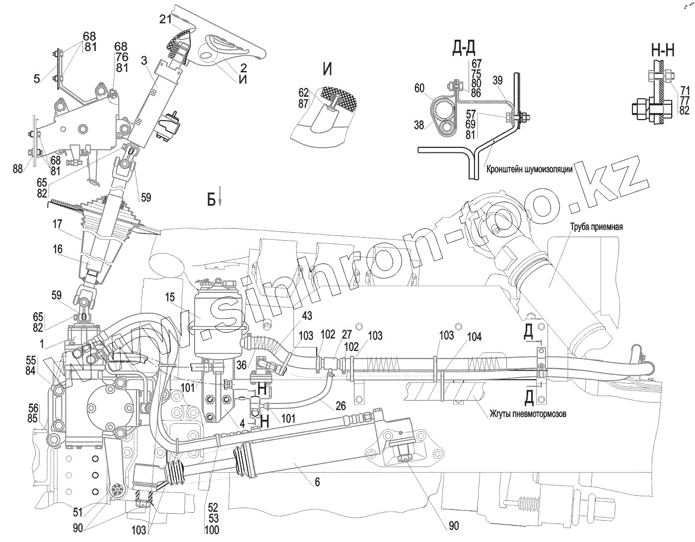 Каталог запасных частей к технике: МАЗ-544018. Установка рулевого управления 5440E9-3400001