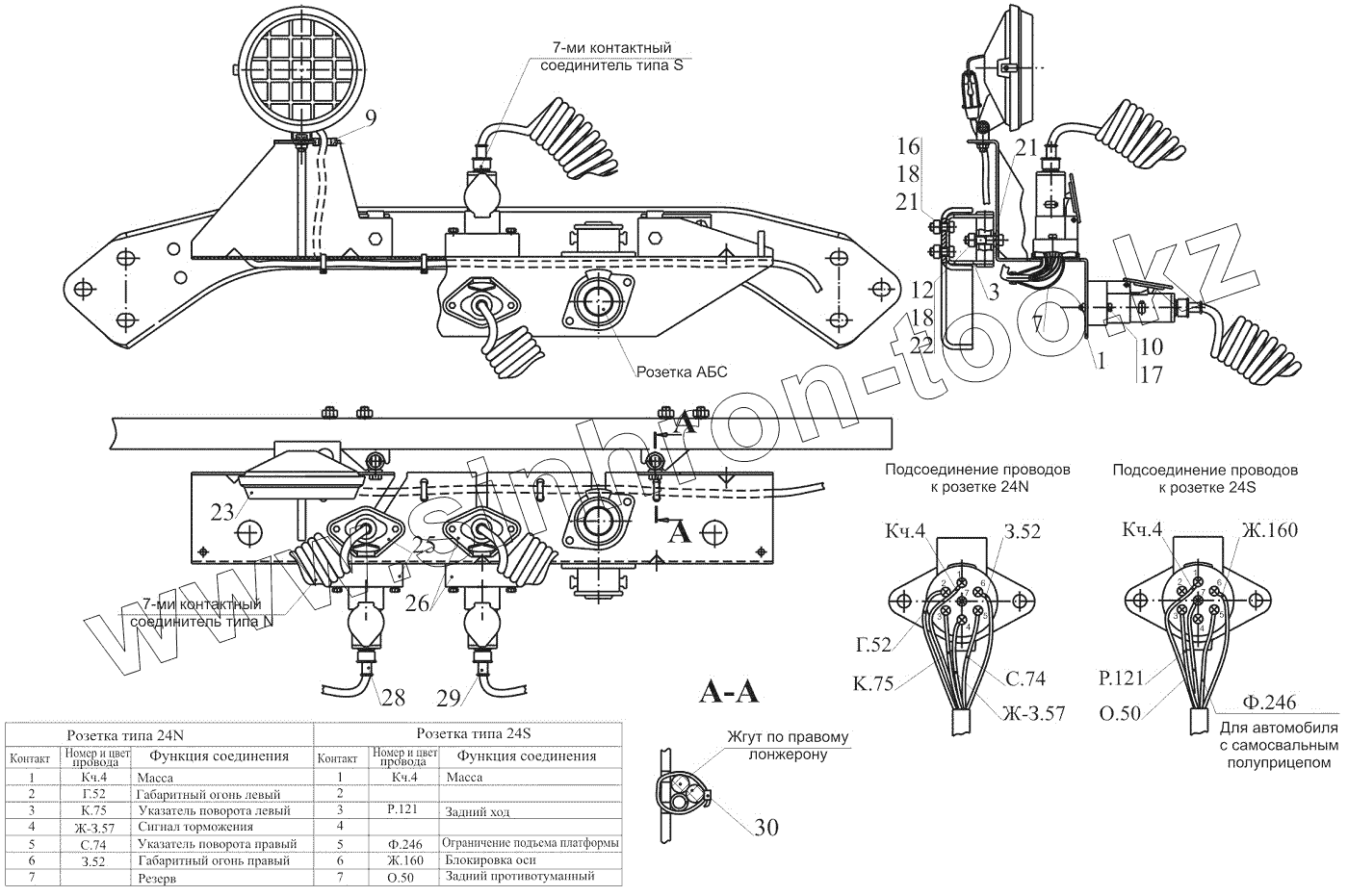 Каталог запасных частей к технике: МАЗ-544018. Установка штепсельных розеток 544019-3700015