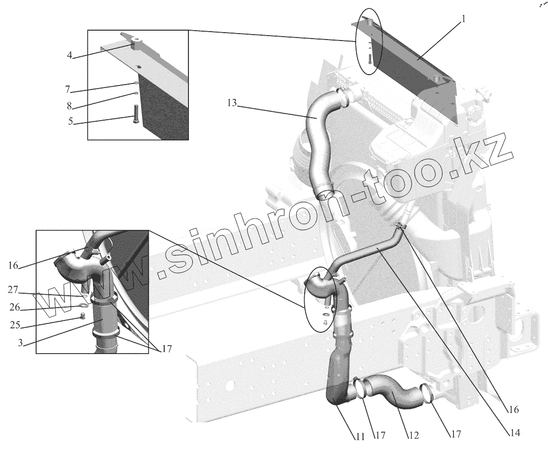 Каталог запасных частей к технике: МАЗ-544018. Установка системы охлаждения 544019-1300005-010